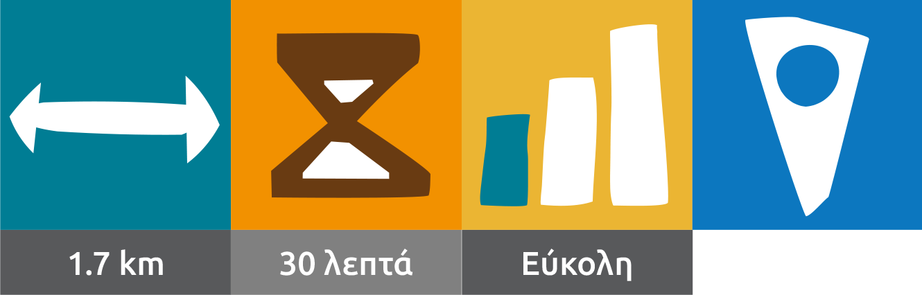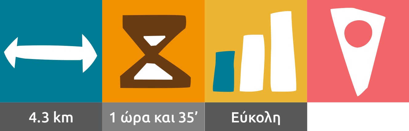Πρόκειται για μια εύκολη διαδρομή, χωρίς μεγάλες υψομετρικές